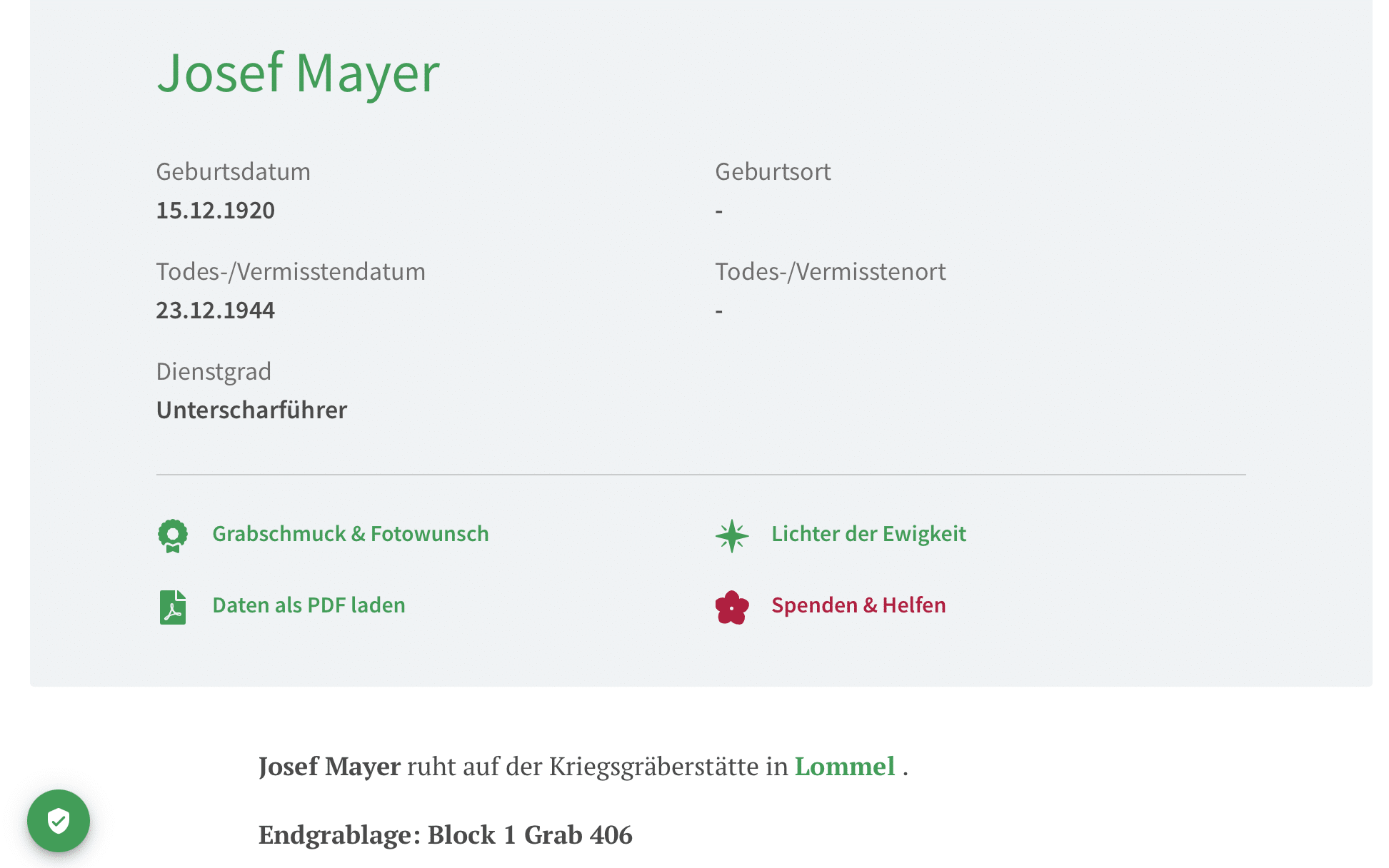 He died on 23 December 1944 and is Nowdays burried on the German war cemetery of Lommel, Belgium.