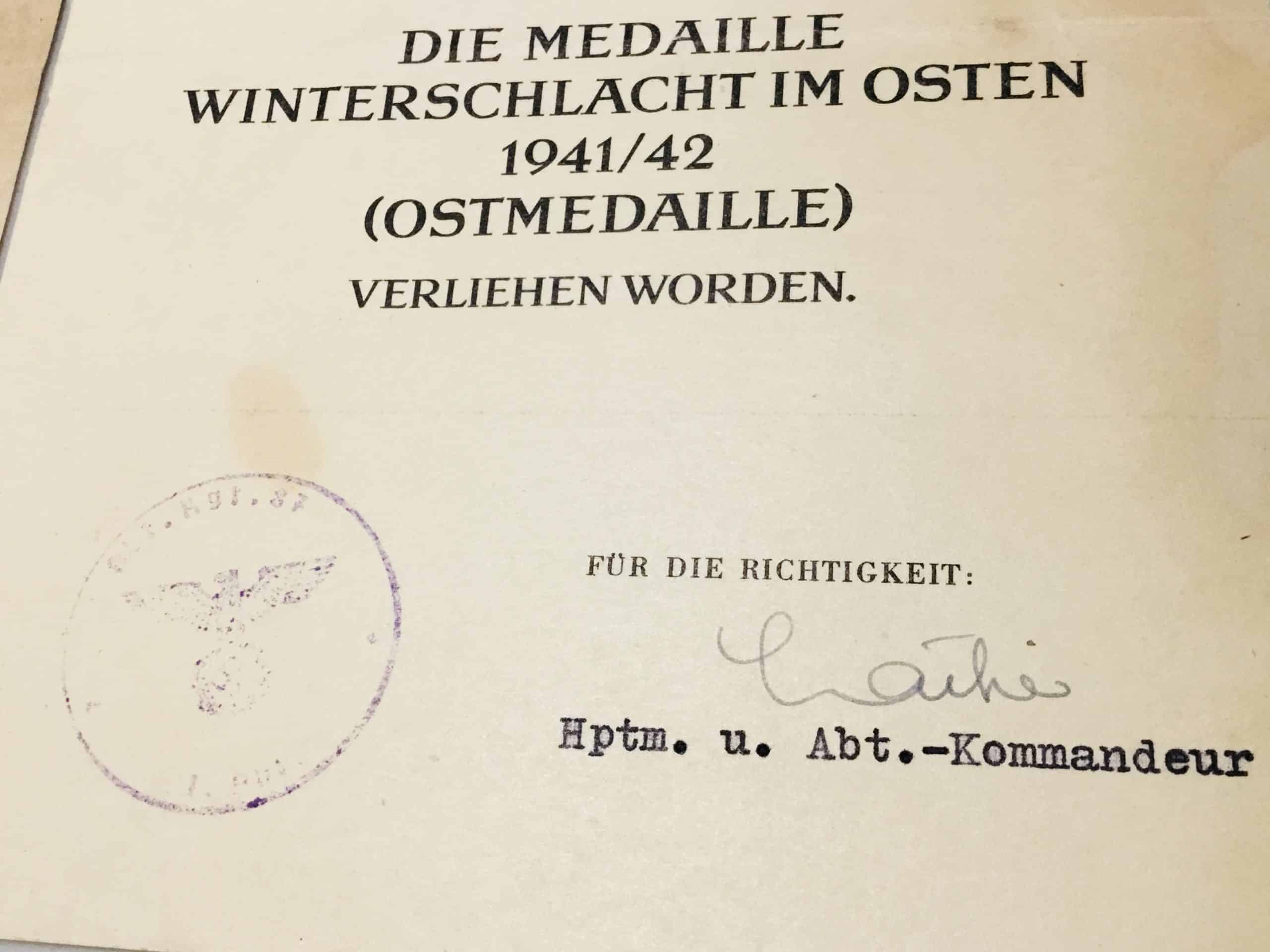 1. Ostmedaille, 9-10-1942
