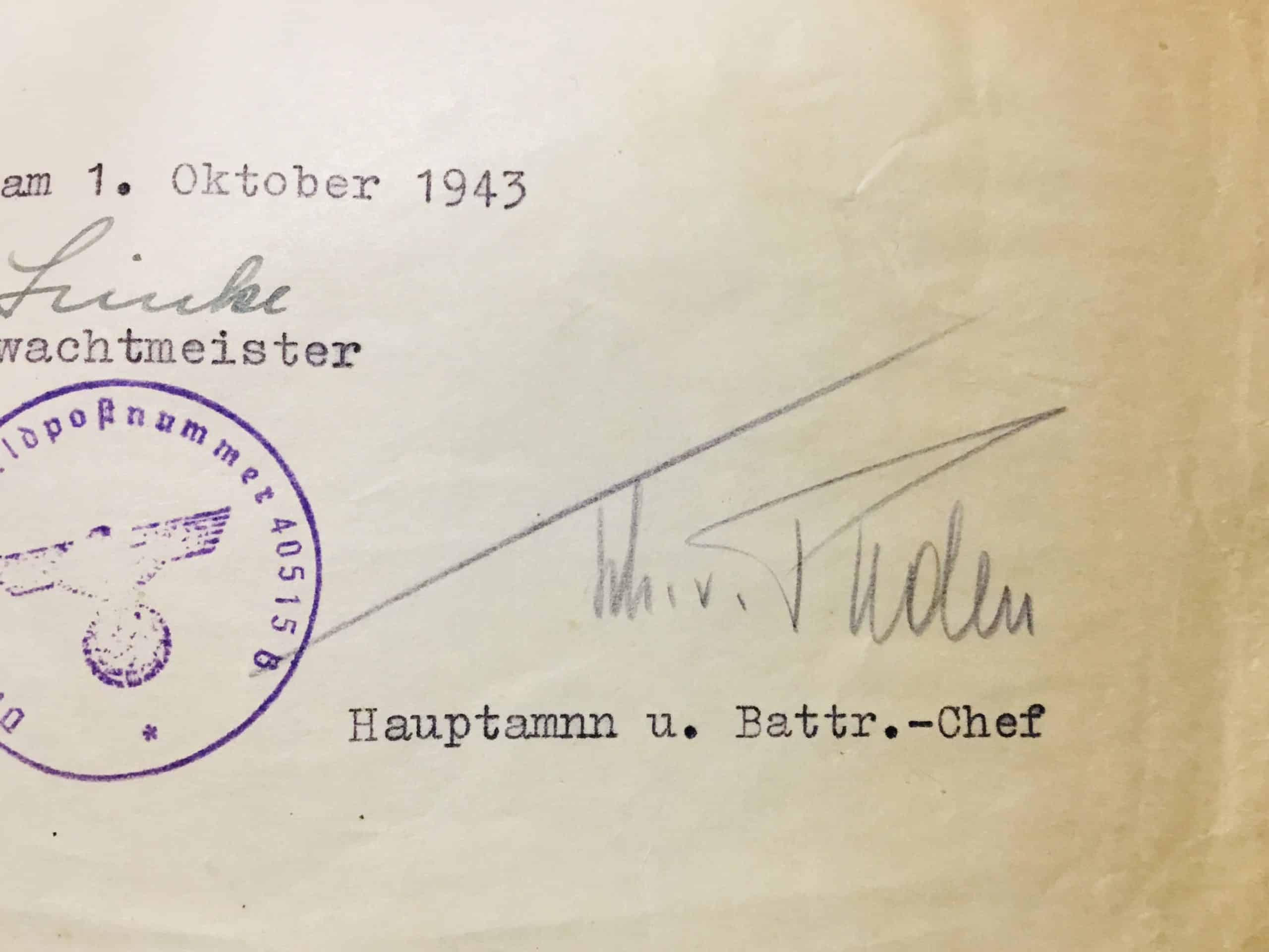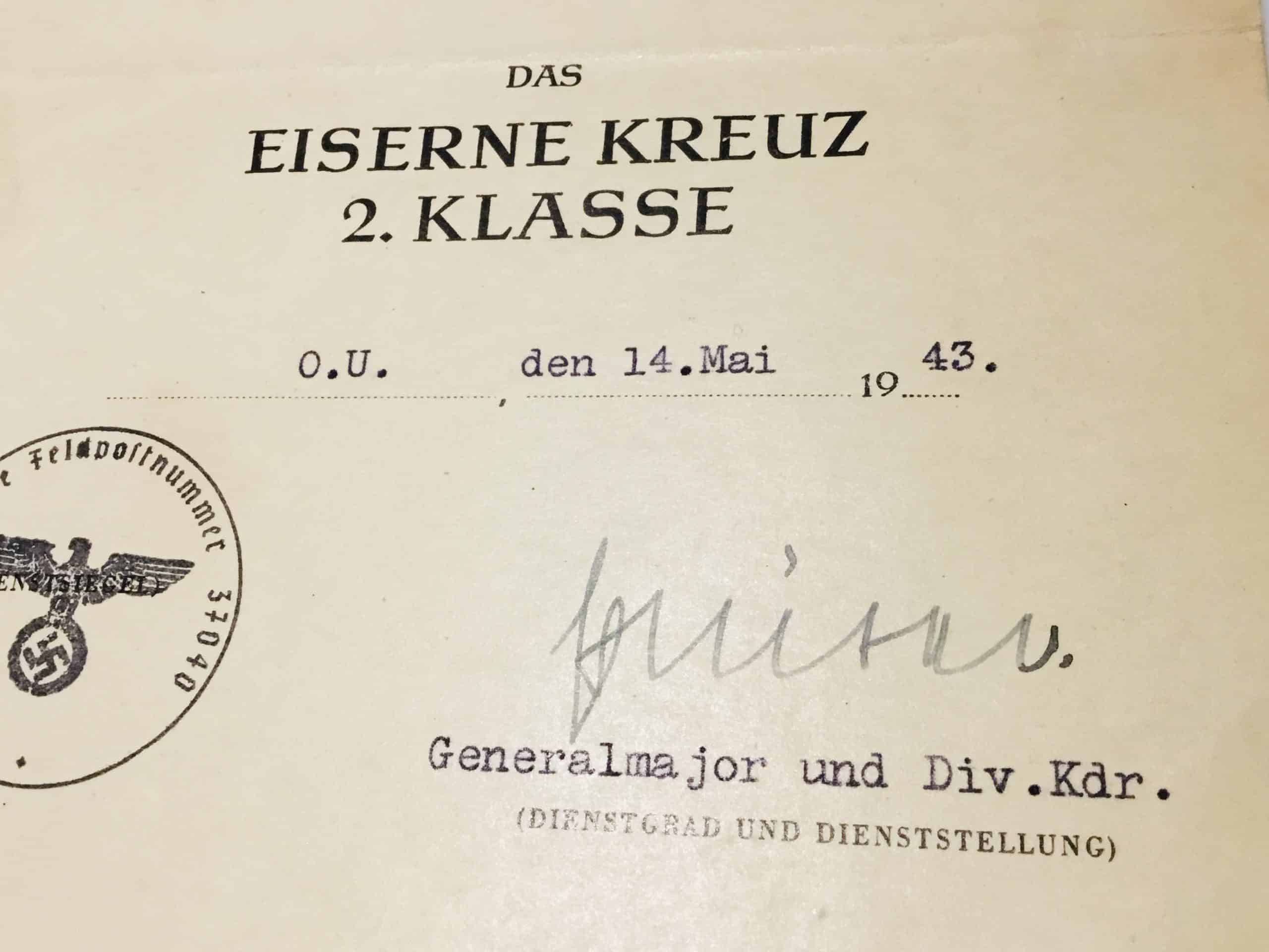 3. EK 2, 14-5-1943 (for the Stalingrad battles!) Signed by Generalmajor Friedrich Pruter. (DKIG)