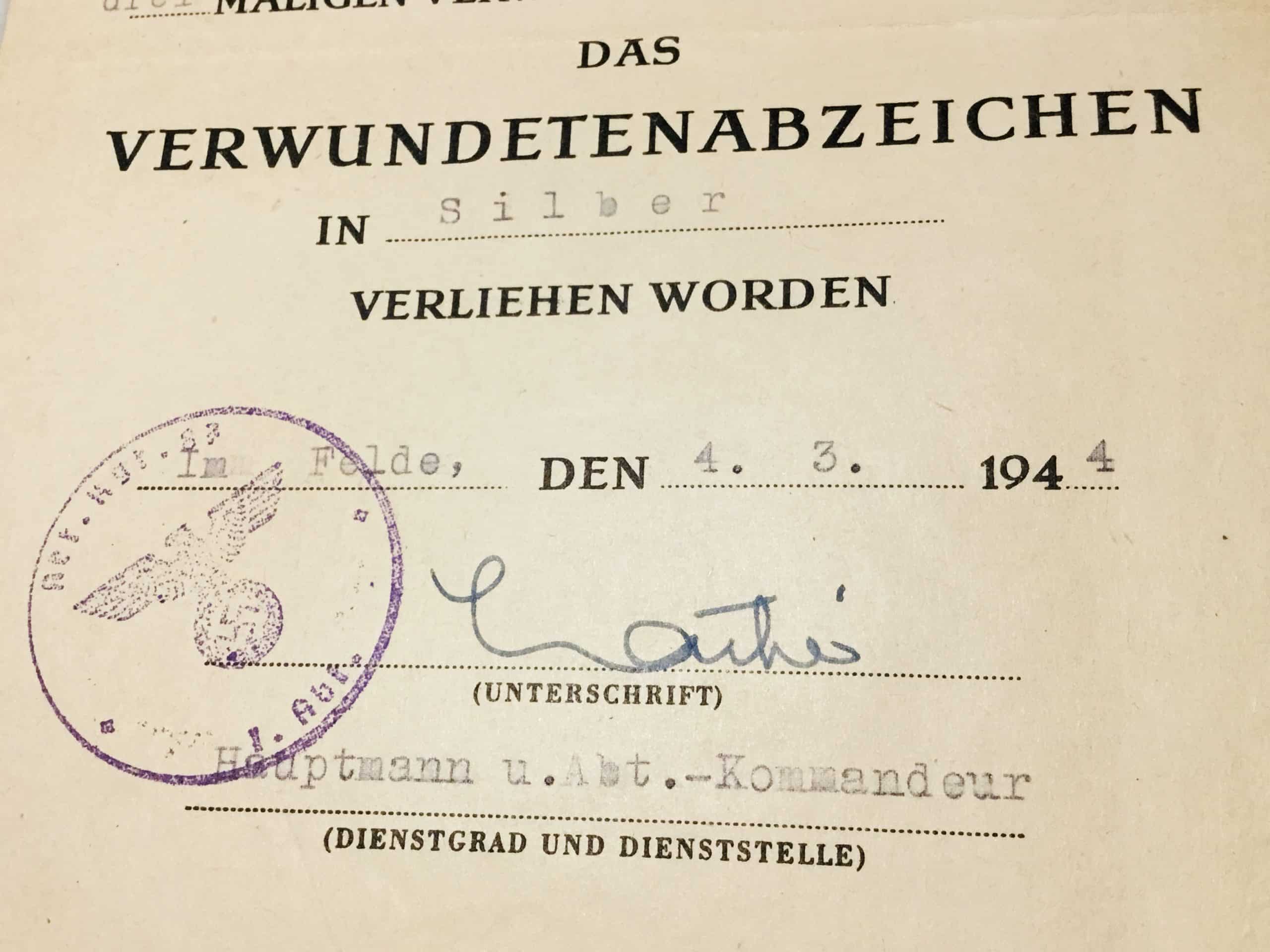 6. Wounded badge in Silver, 4-3-1944