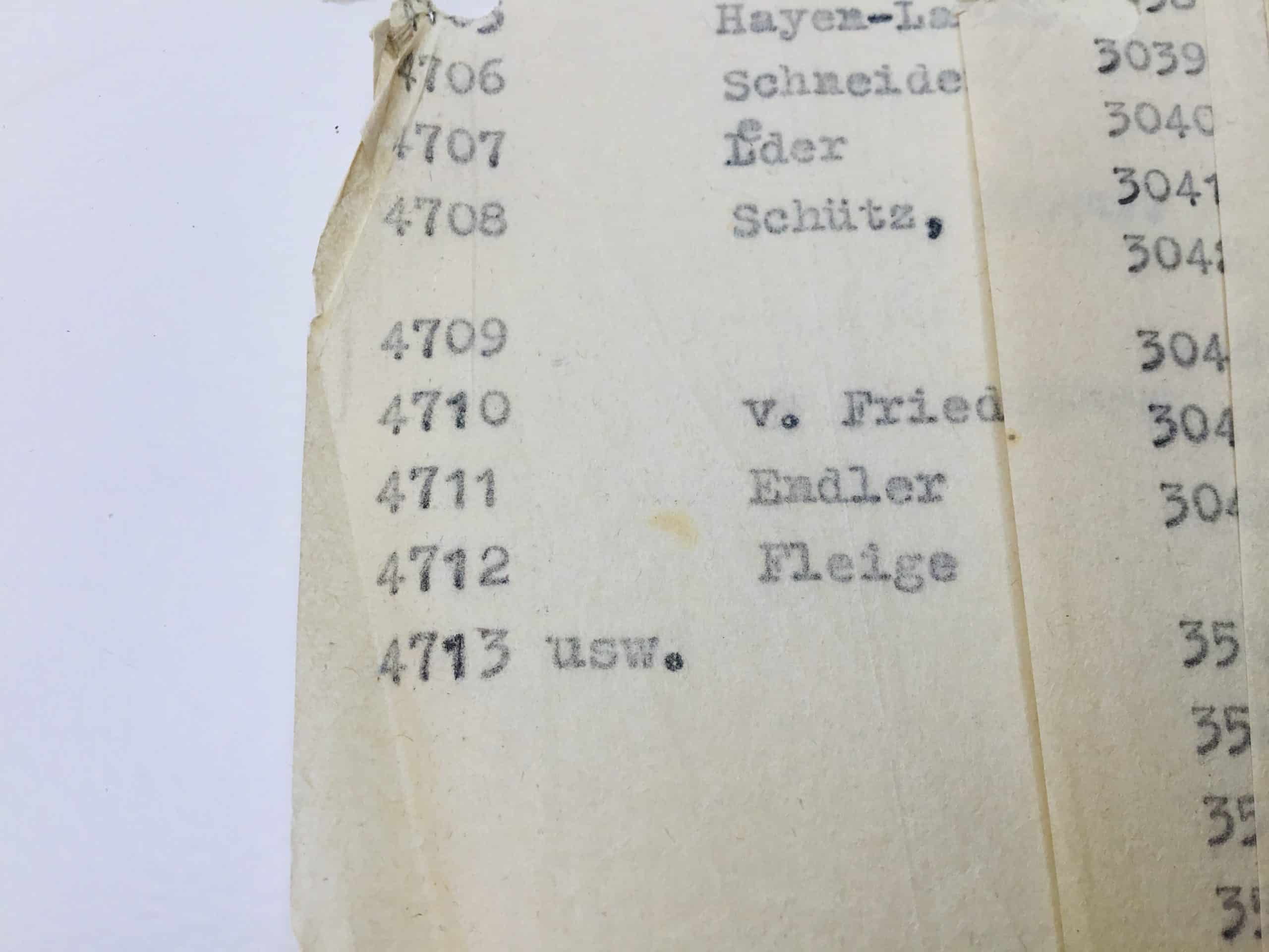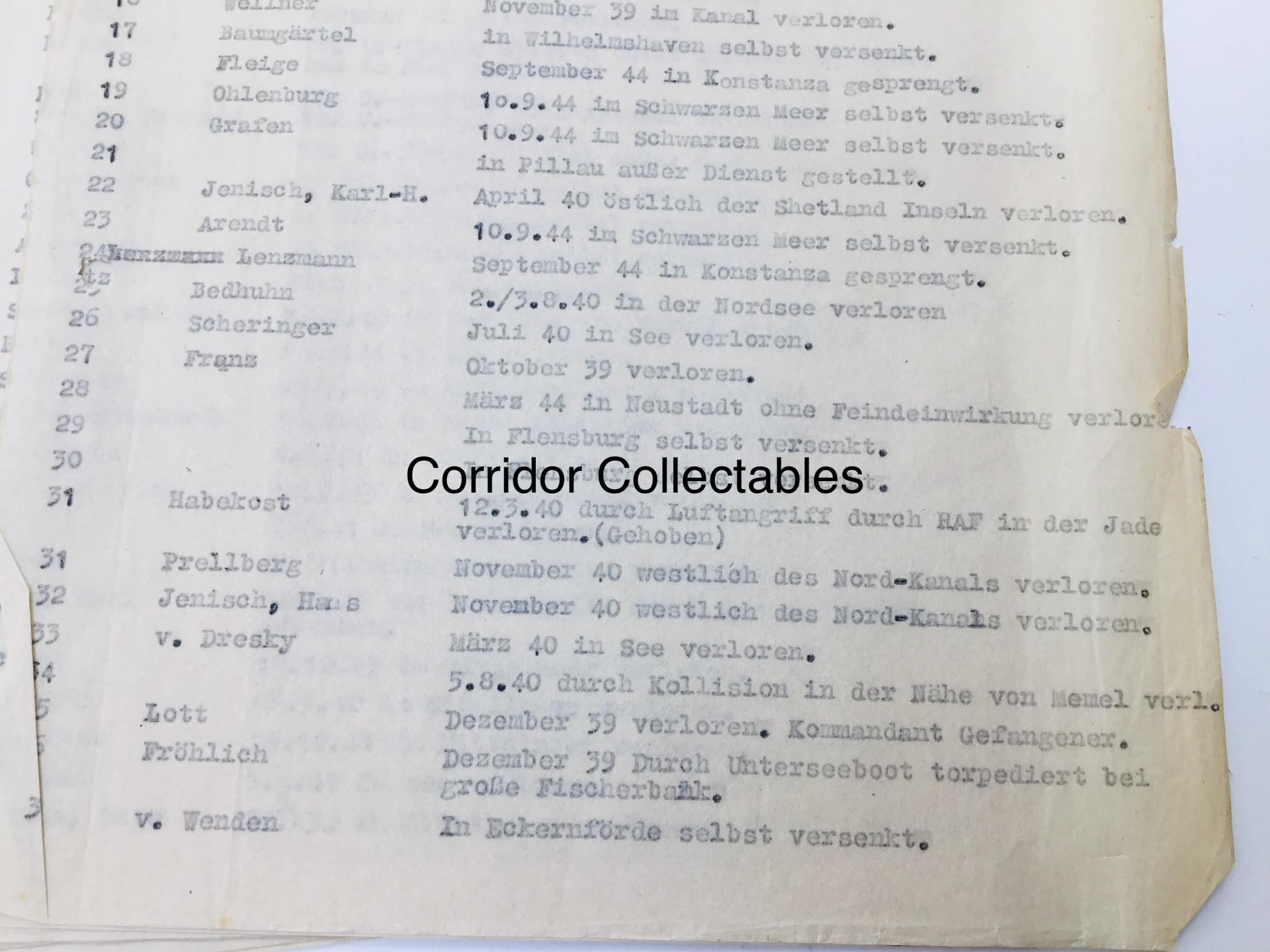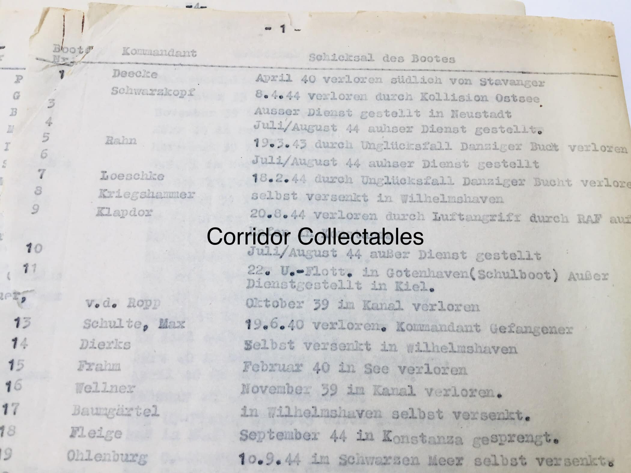 German List of 30 pages on thin paper with all German U-boots / Submarines and their commanders and their fate listed during the period 1939 - 1945.