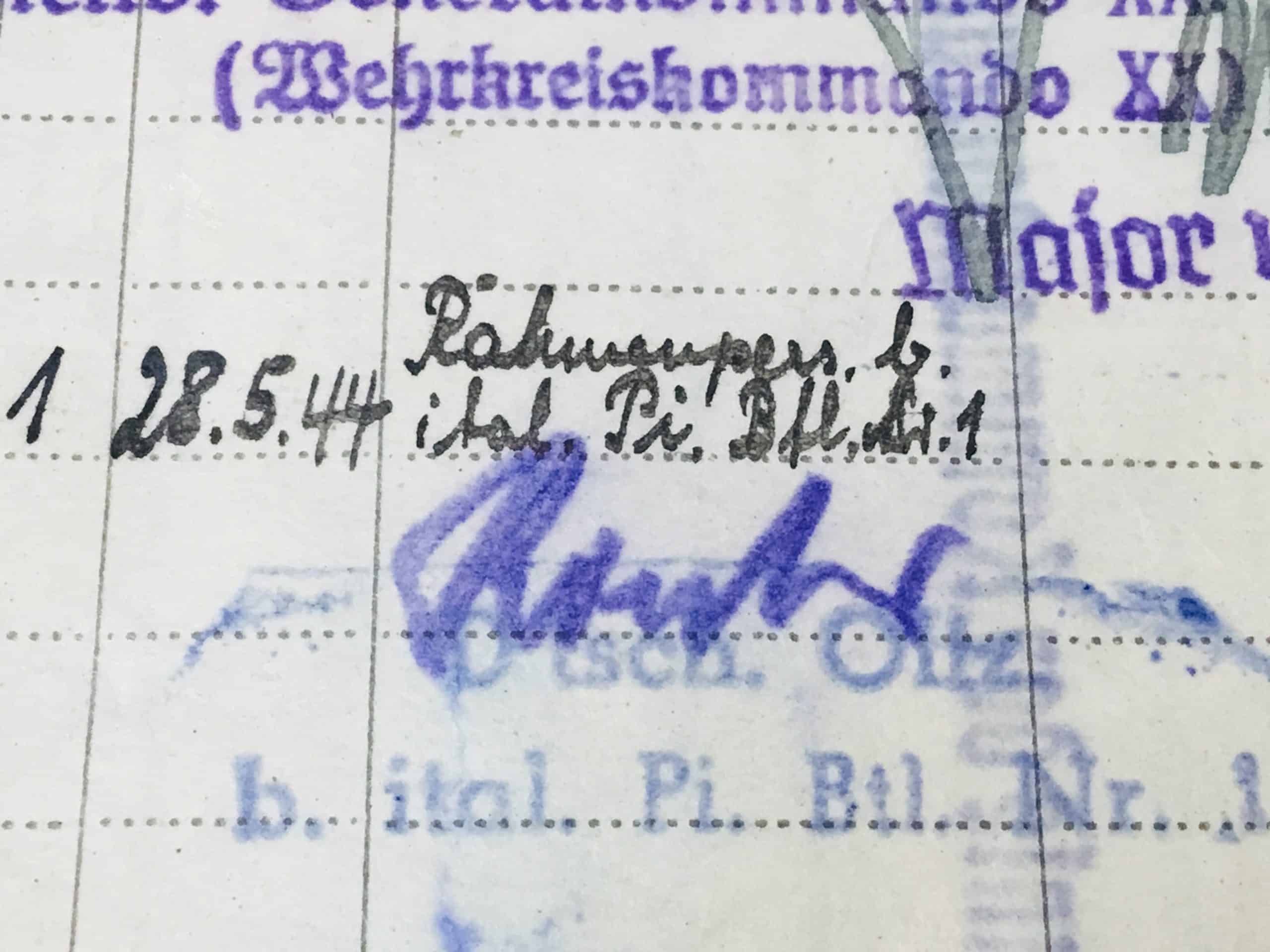 He got promoted by “Italian Pionier Battalion 1” on 28-5-1944.