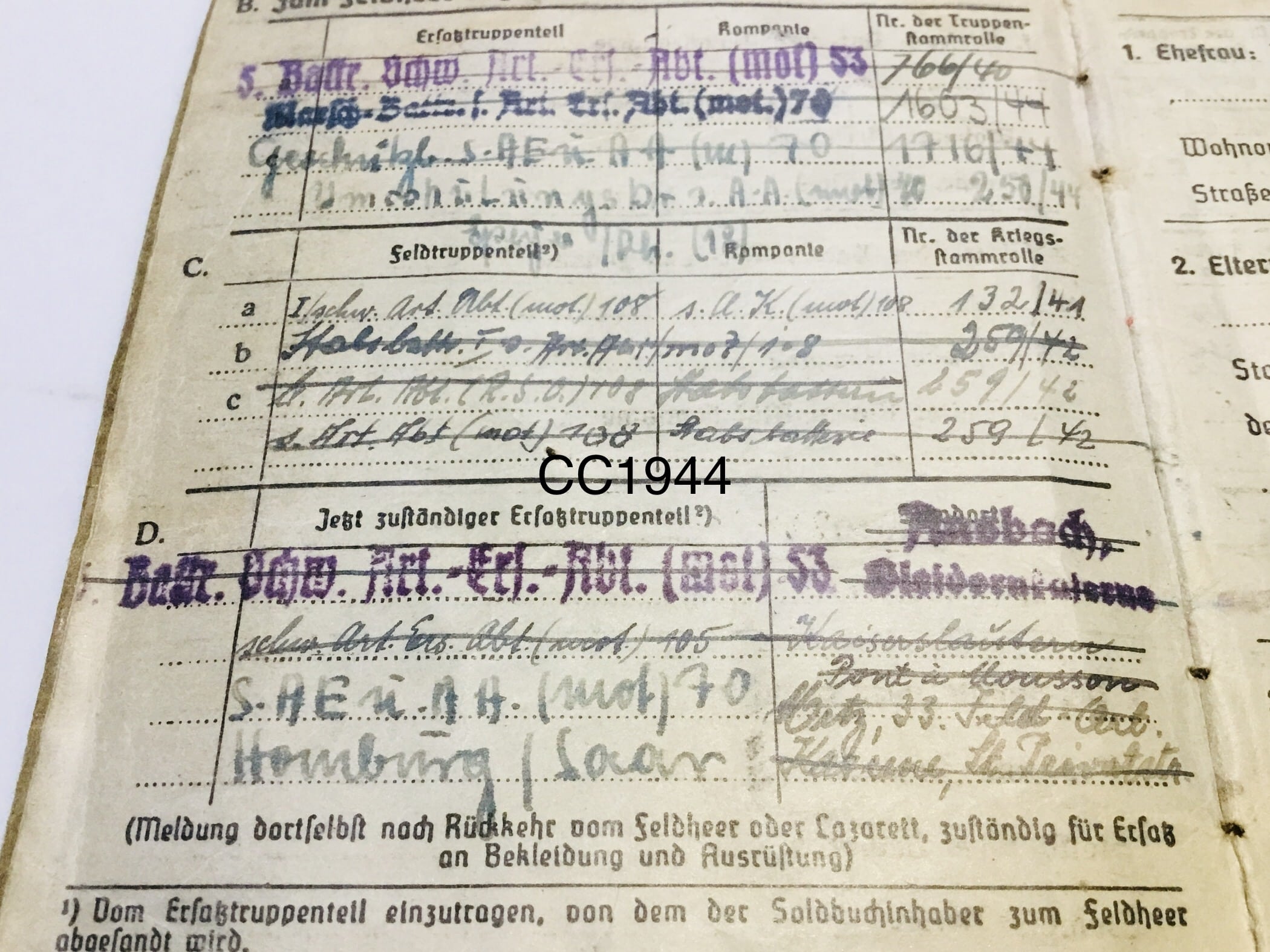 Soldbuch Schwere Artillerie Abt. 108 – Panzer Lehr Division Westfront