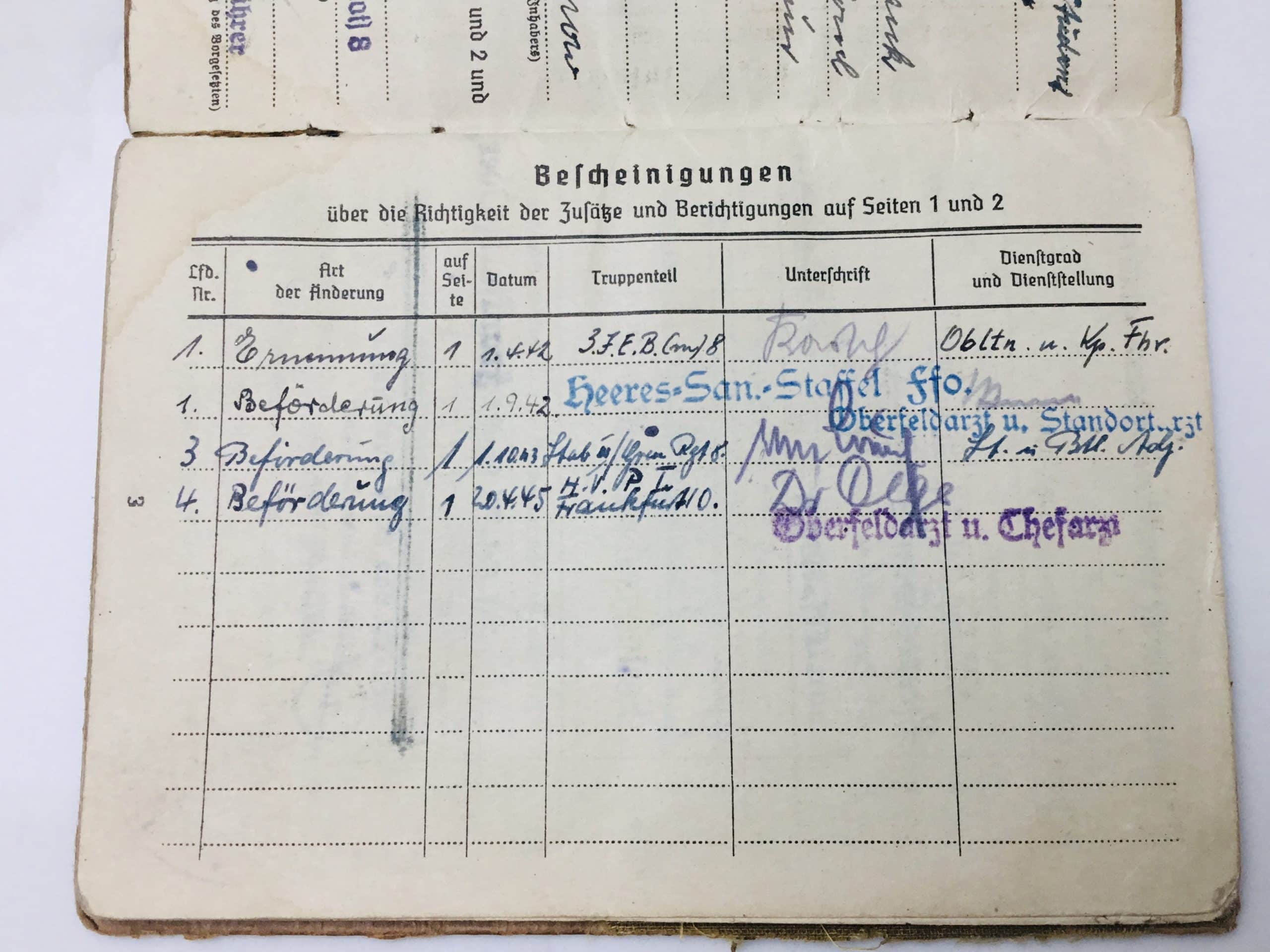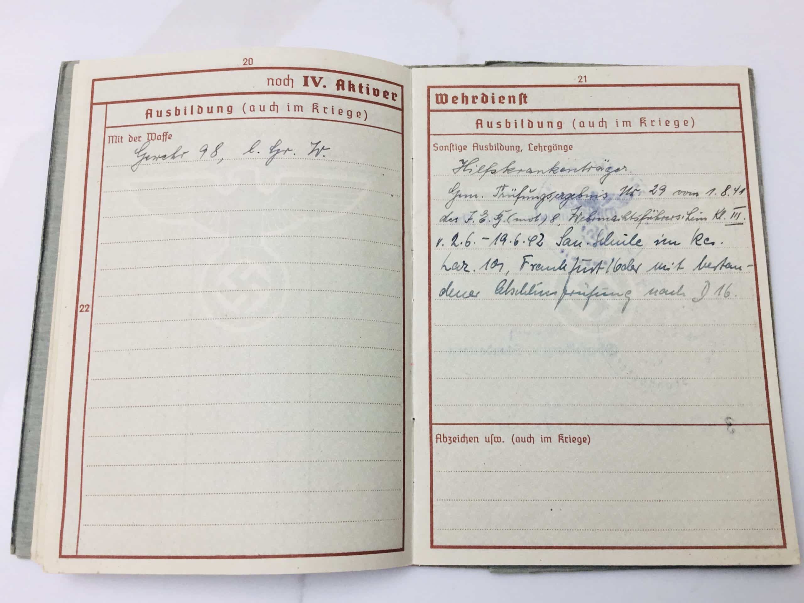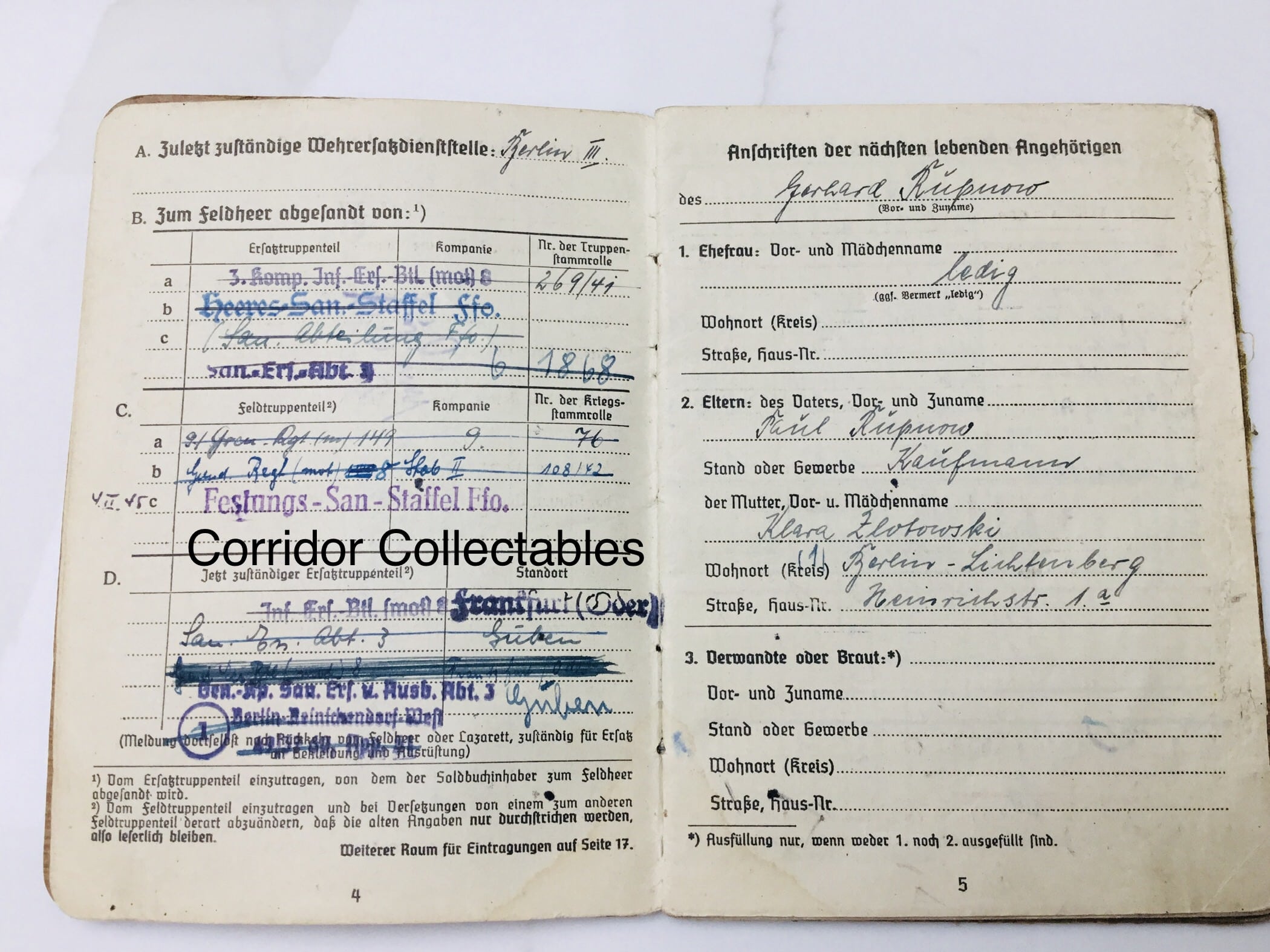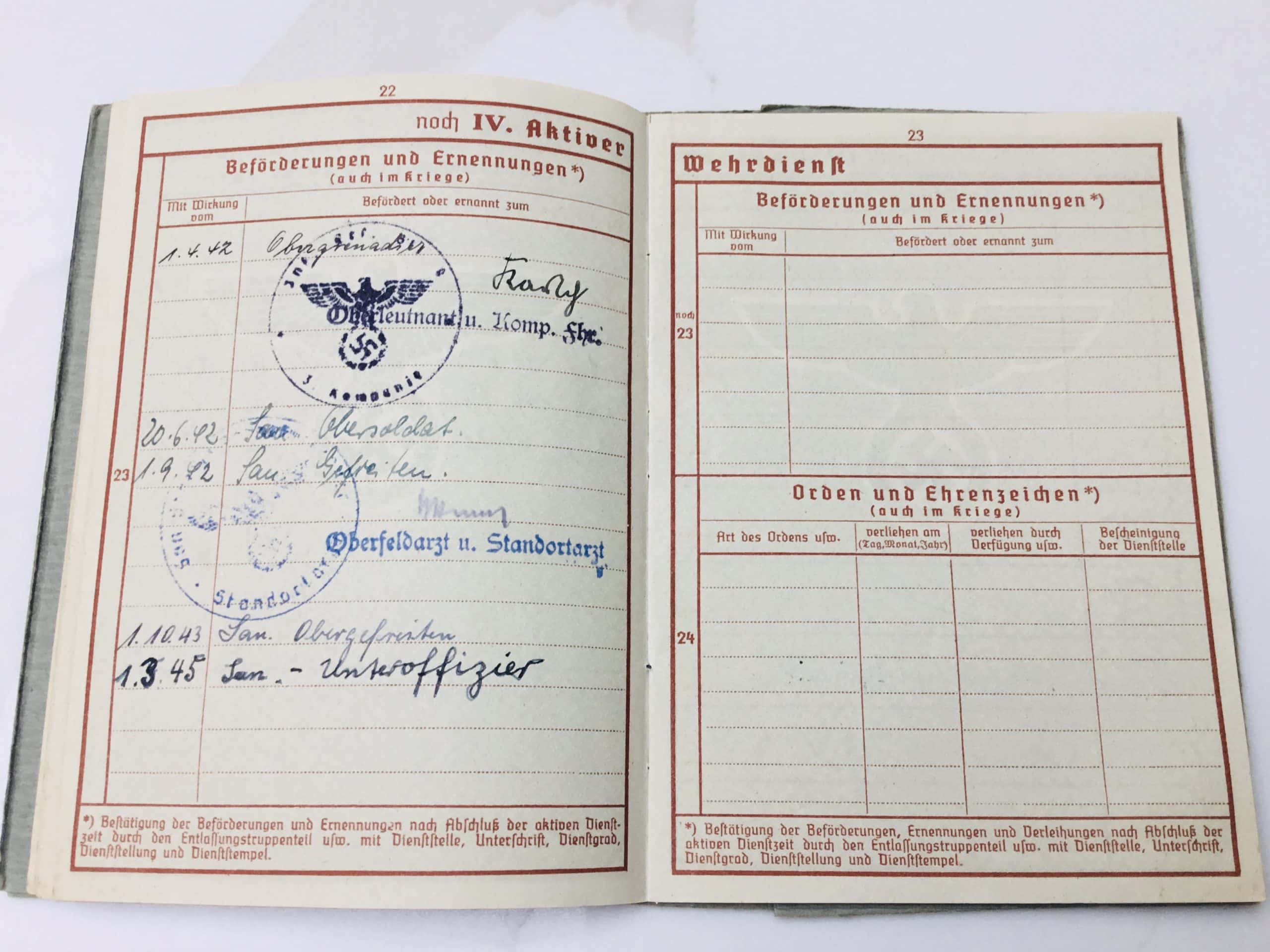 Soldbuch + Wehrpass to Sanitats Unteroffizier Rupnow.