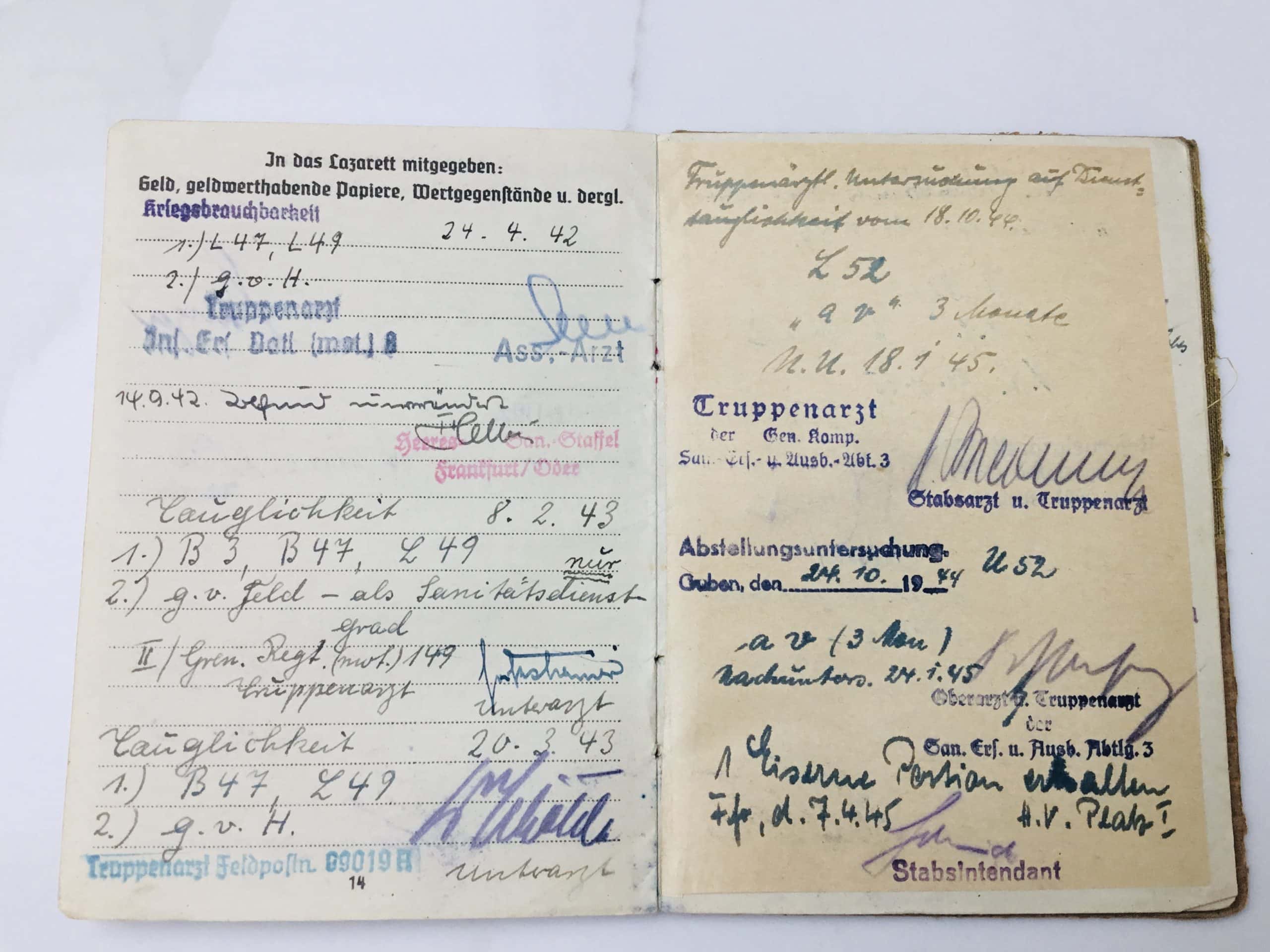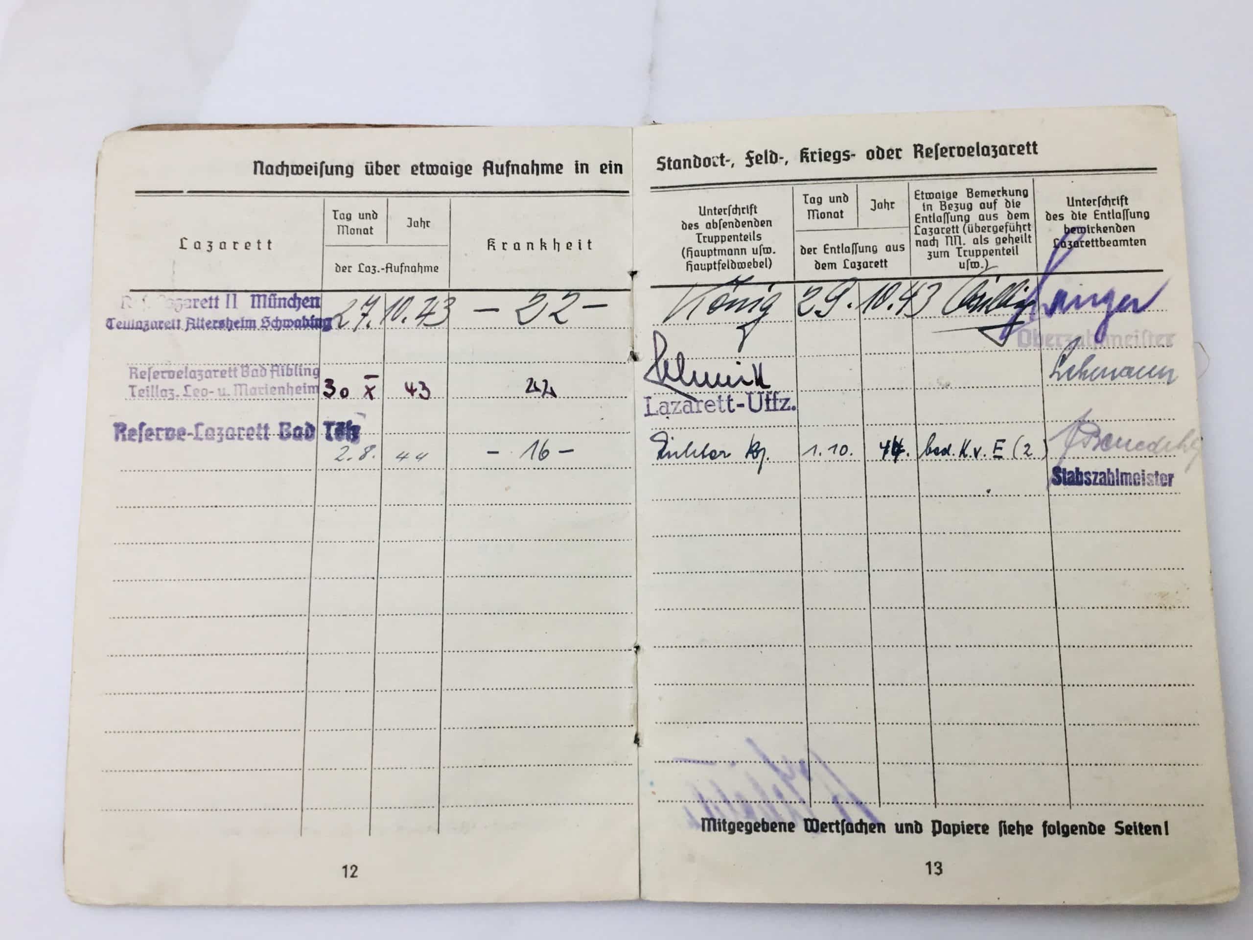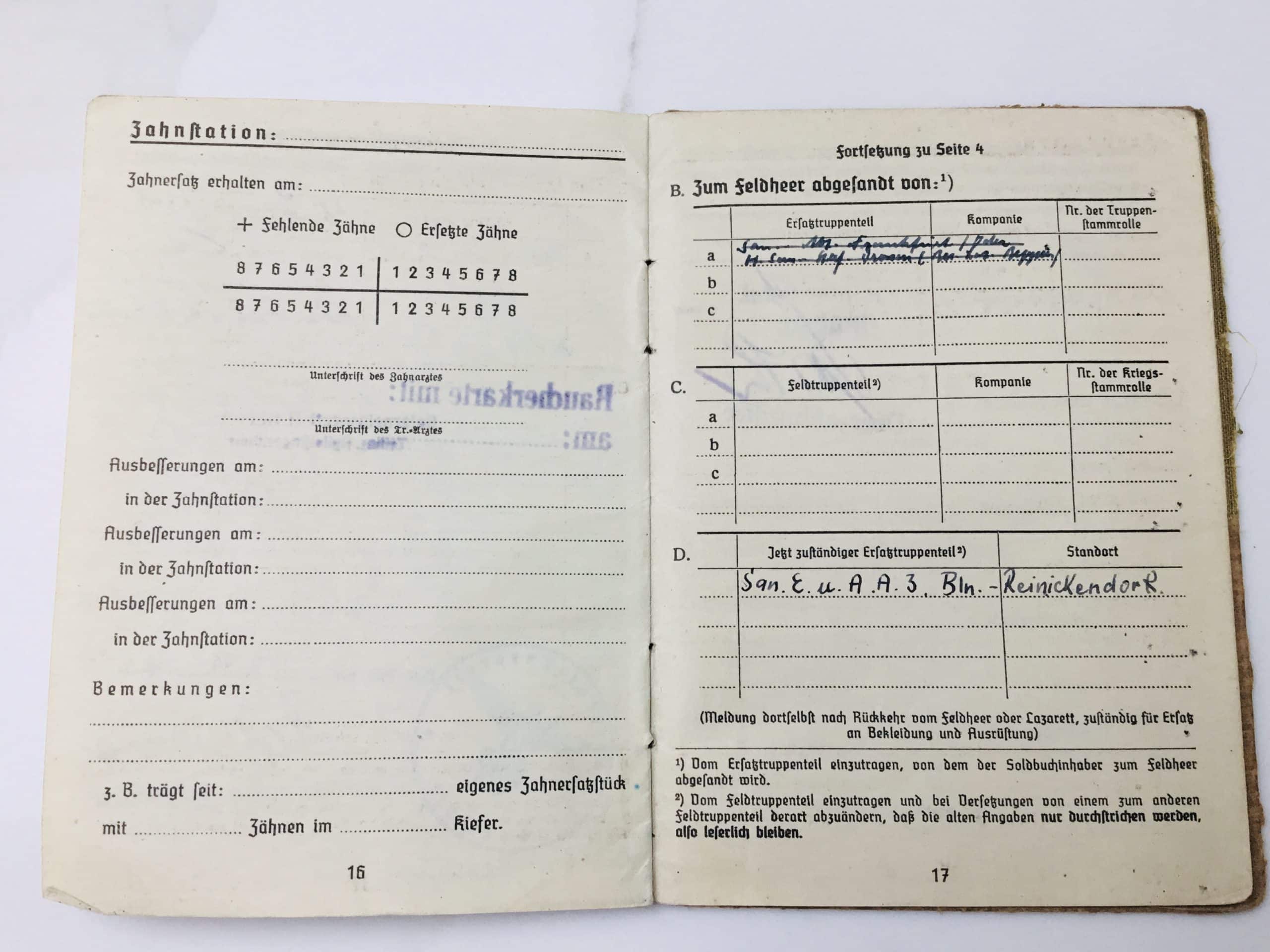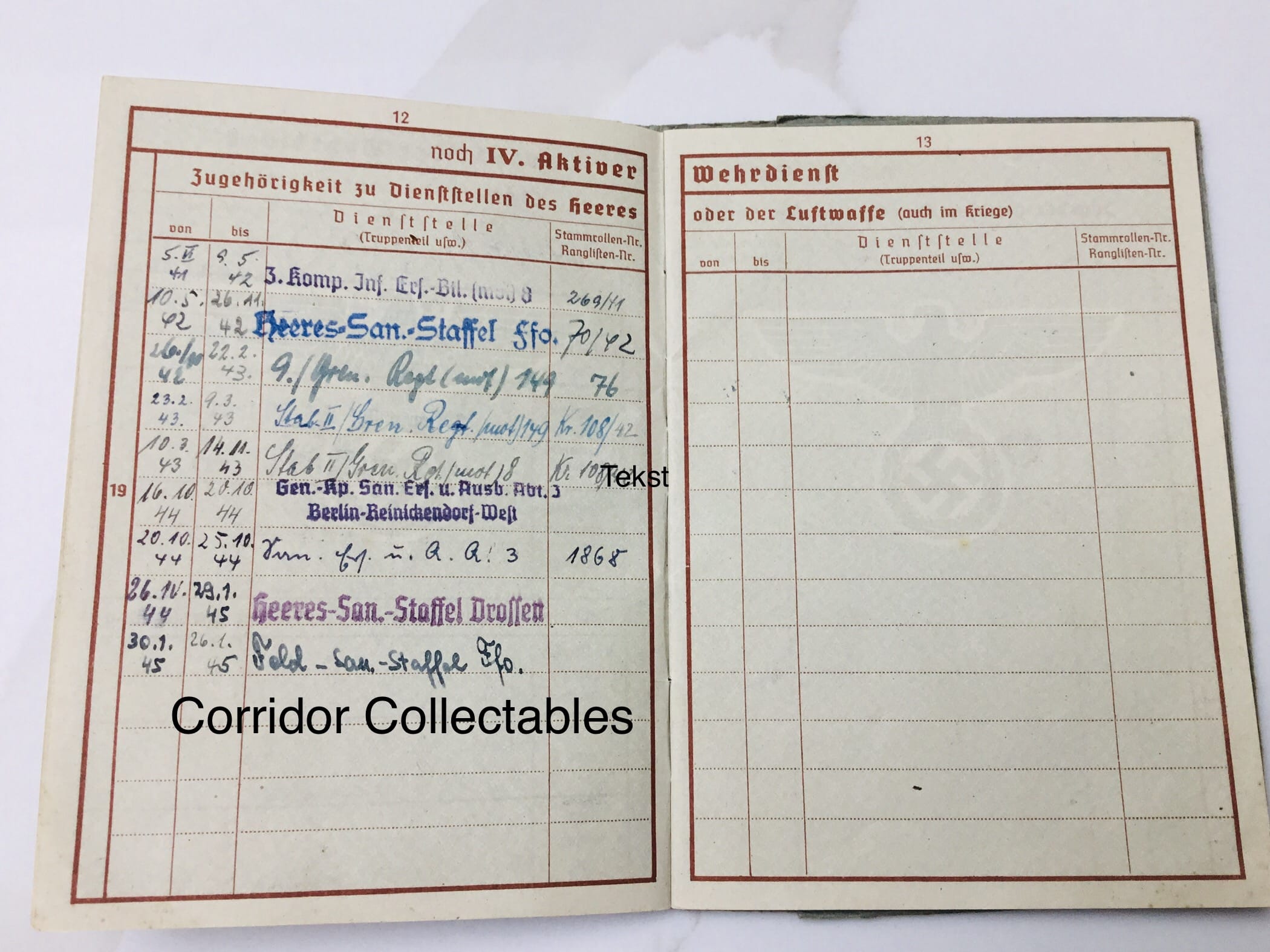 Soldbuch + Wehrpass to Sanitats Unteroffizier Rupnow.