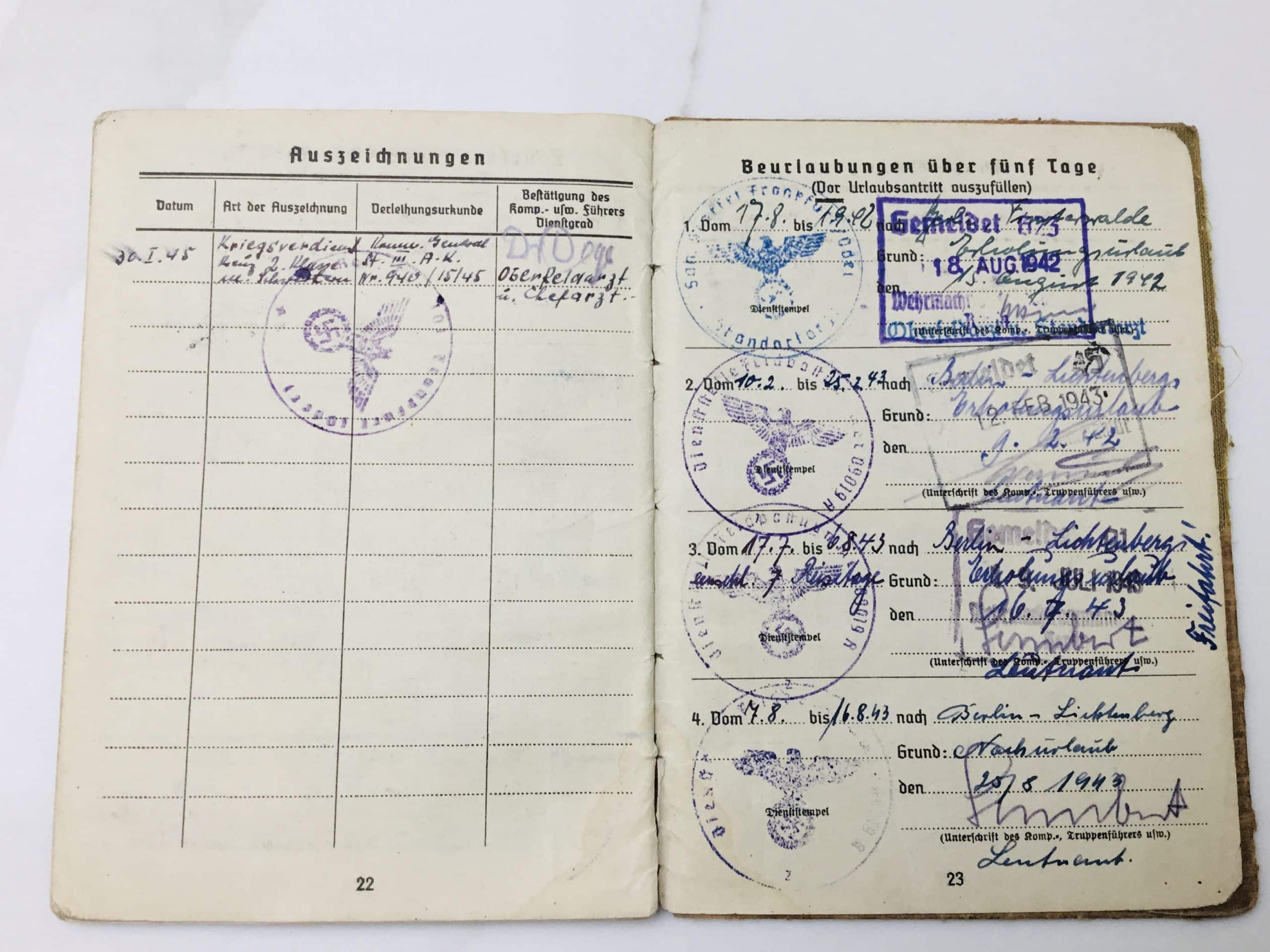 Soldbuch + Wehrpass 3. Pz.Grenadier Division Italy Festung Frankfurt a/d Oder 1945