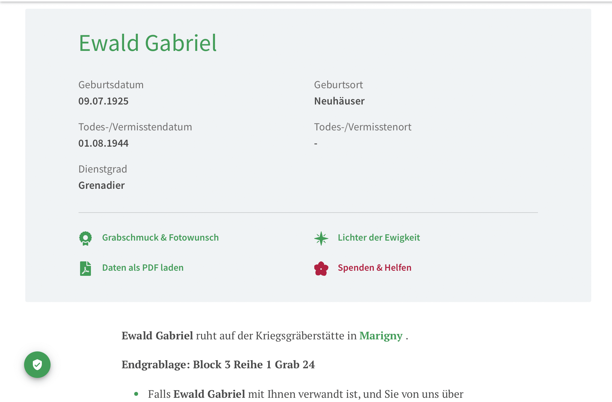 Nowdays he is burried on the German war cemetery of Marigny, France.