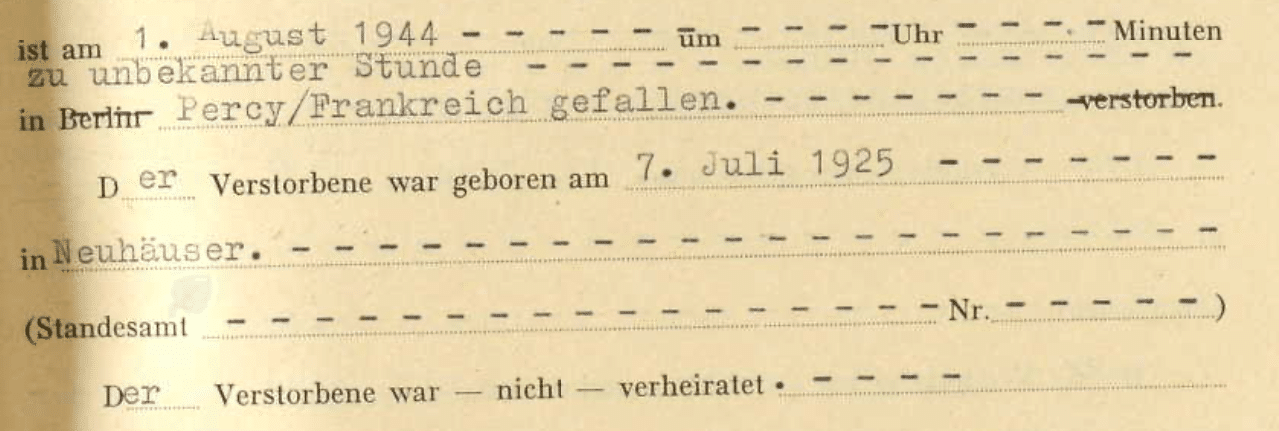 3,5 weeks later later on 1-8-1944 he lost his life during the battles around Percy.