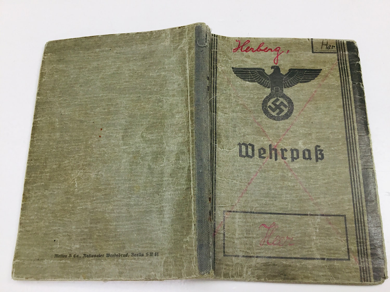Wehrpass first issue to Gefreiten Willi Herberg from Arholzen.