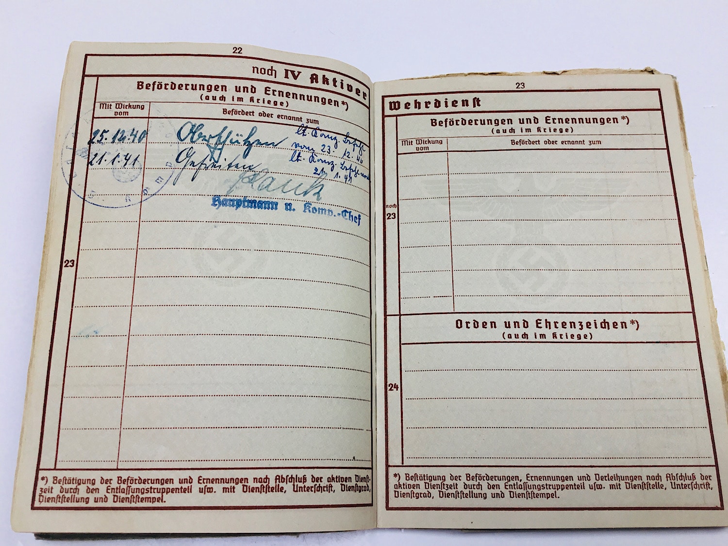 Wehrpass Gefreiten Willi Herberg.