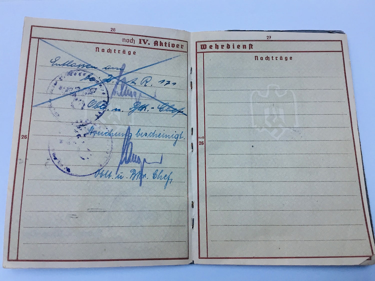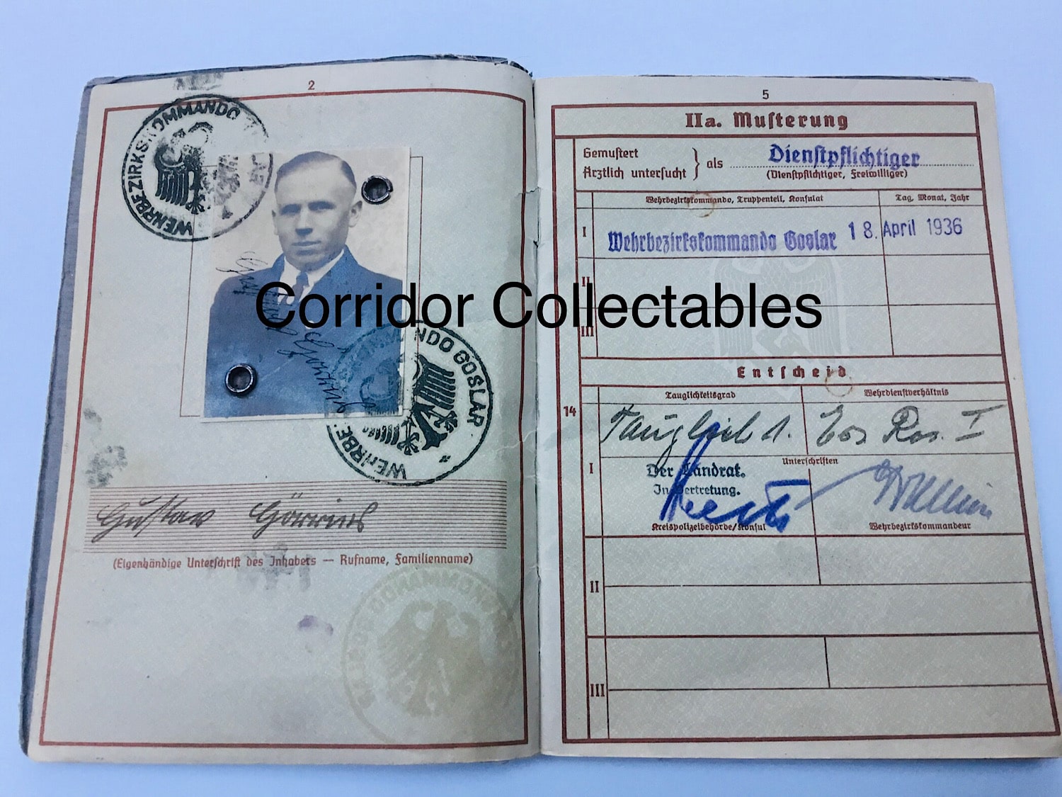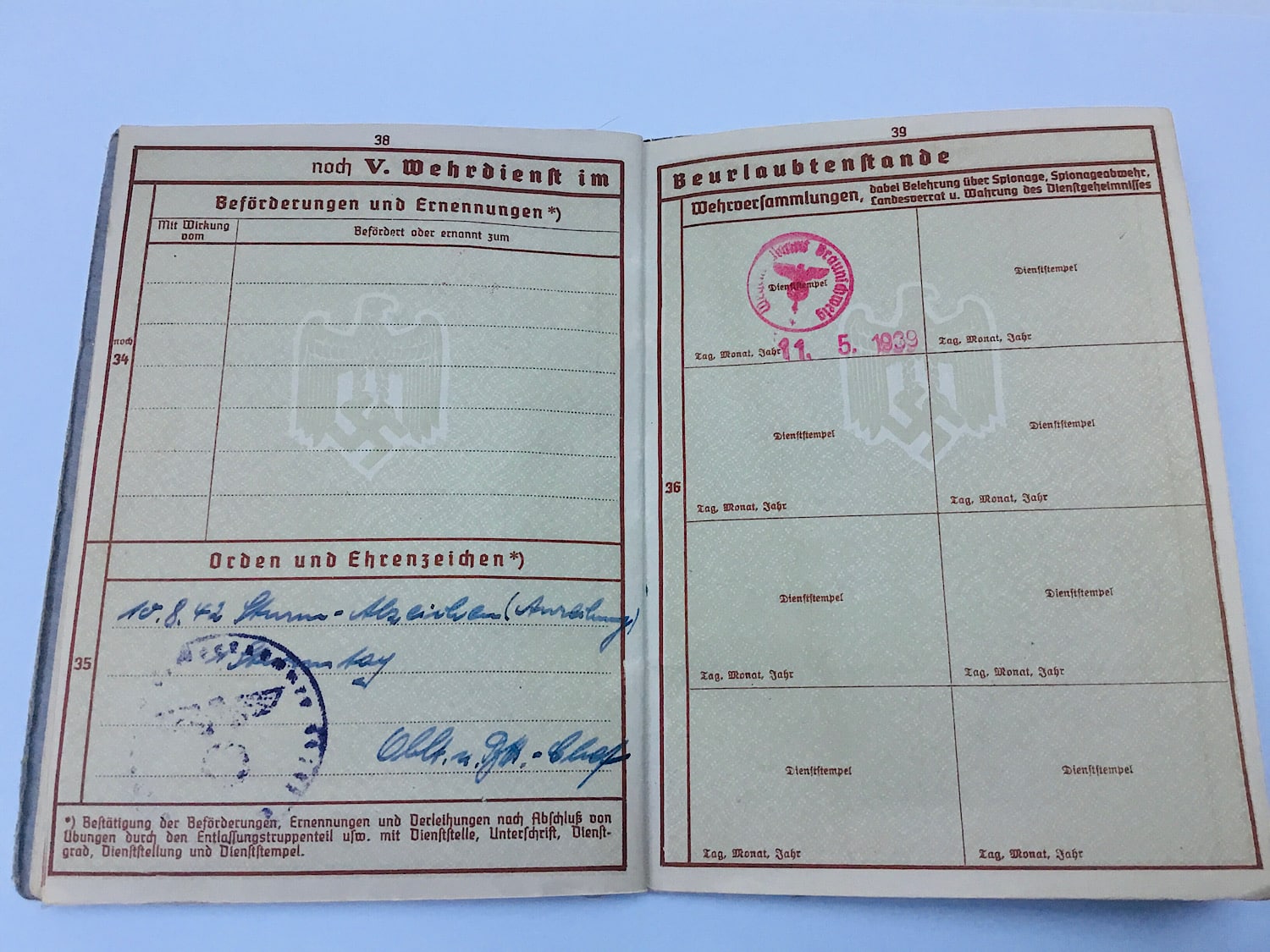 Wehrpass, first issue to Stabsgefreiter Gunther Gowwich.