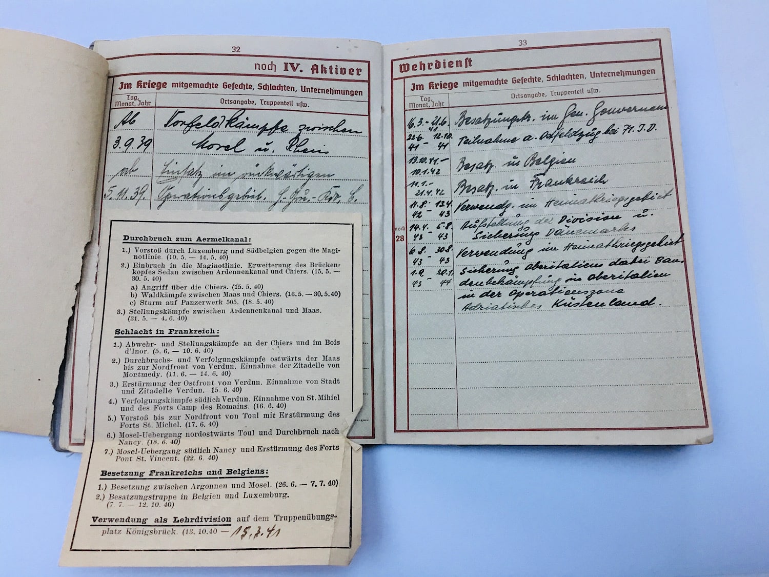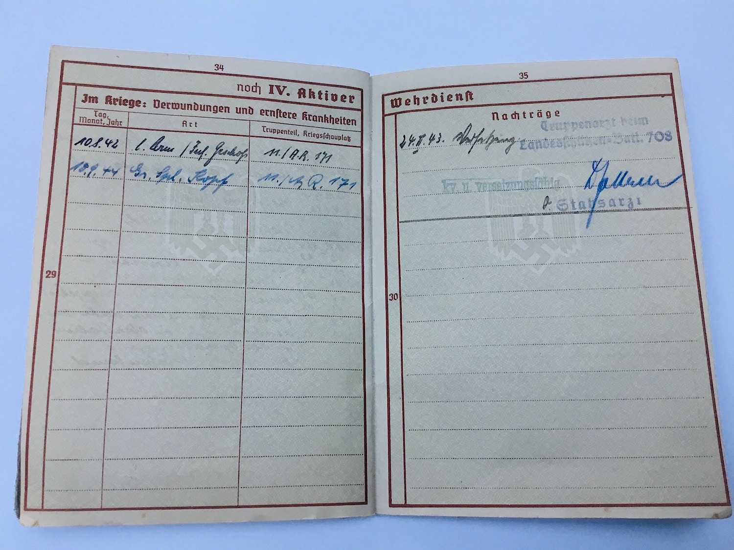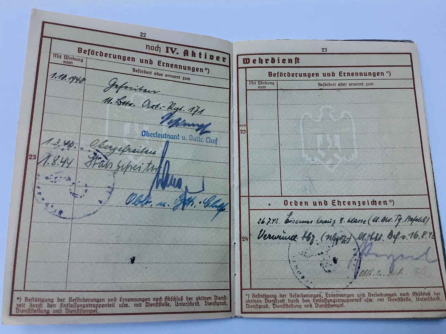 Wehrpass, first issue to Stabsgefreiter Gunther Gowwich.