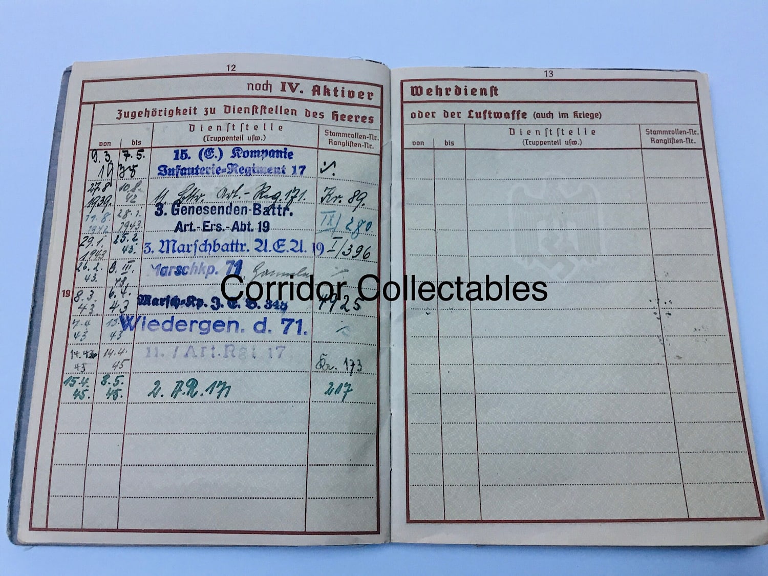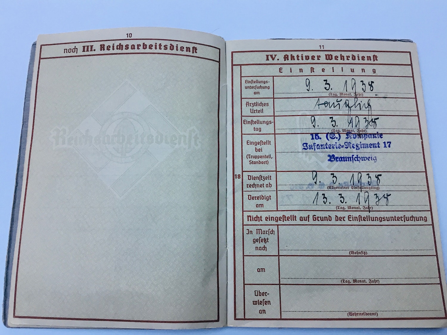 The Wehrpass opens at 9-3-1938 when he joined 15. Ersatz Kompanie Infanterie Regiment 17 based in Braunschweig.