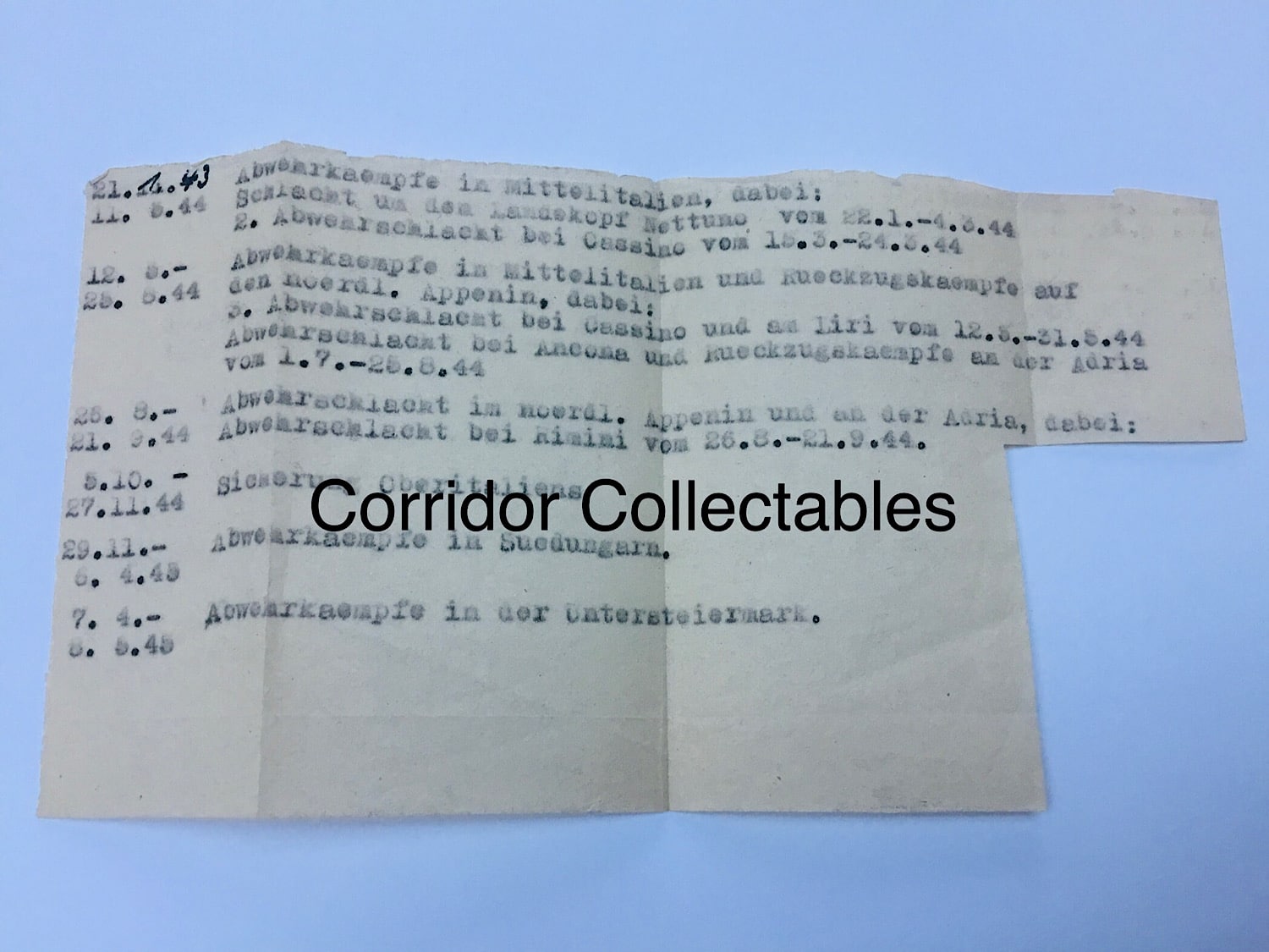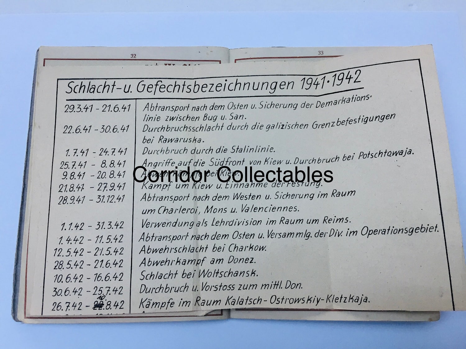 Wehrpass 71. Infanterie Division – France – Russia – Italy – Monte Cassino